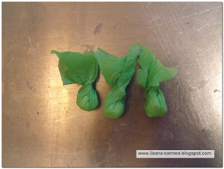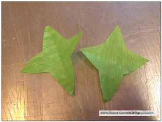 Se taie apoi o forma, dintr-un patrat de hartie creponata de culoare verde de dimensiuni