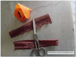 For stamens we cut a strip of crepe paper of (4 x 15) cm in dimensions.