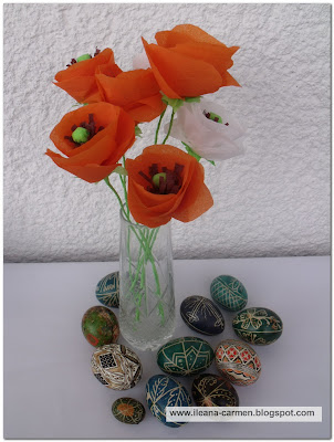 RăspundețiȘtergereMultumesc pentru vizita pe blogul meu. Mi-ai starnit curiozitatea si asa ca am intors vizita. Sunt impresionata. Foarte frumoase lucrari. iar macii, pe langa floarea soarelui, sunt florile mele preferate. Cu siguranta am sa incerc sa imi fac cativa, conform acestui tutorial. poate acum, de Pasti, fiind mai liniste, ca sa ma relaxez putin.