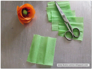 To achieve the poppy capsule we cut a square of green crepe paper of (5 x 5) cm in dimensions.